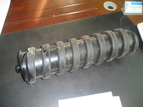 螺旋橡膠托輥是引進國外先進技術,針對化工行業固體粘濕物料輸送時存在嚴重問題開發研制的科技成果.我公司專業從事皮帶機螺旋橡膠托輥的制造和銷售,該產品在國內享有千家的用戶,還遠銷東南亞各國。該產品的問世,從根本上解決了帶式輸送機普遍存在的腐蝕,粘輥、膠帶跑偏和撕裂等嚴重問題。具有結構新穎、安裝維修方便、自定中心輸送平穩、不粘輥、噪音小,能耗低及延長膠帶使用壽命特點。填補了國內空白,并被多家部屬化工設計院納入通用設計規范。