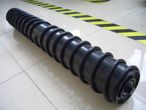 螺旋橡膠托輥表面有數圈高度耐磨膠圈,可以有效防止塵土進入皮帶回程段,亦可避免回程托輥表面上附有積料。螺旋橡膠托輥安裝方便,自定中心輸送平穩,減少輸送帶跑偏和保護輸送帶等特點,尤其適用于磷復肥粘濕物料的輸送。